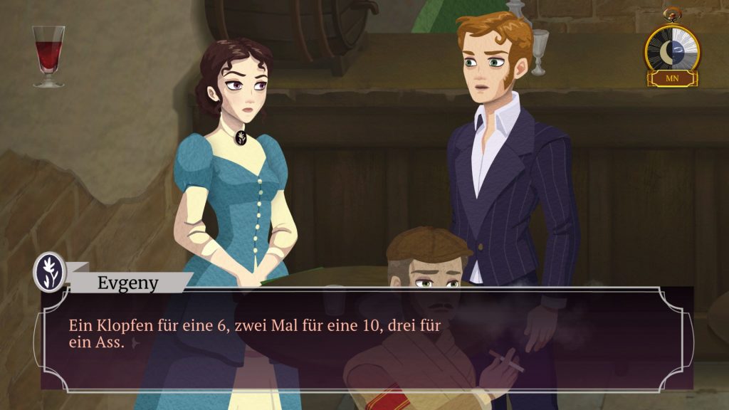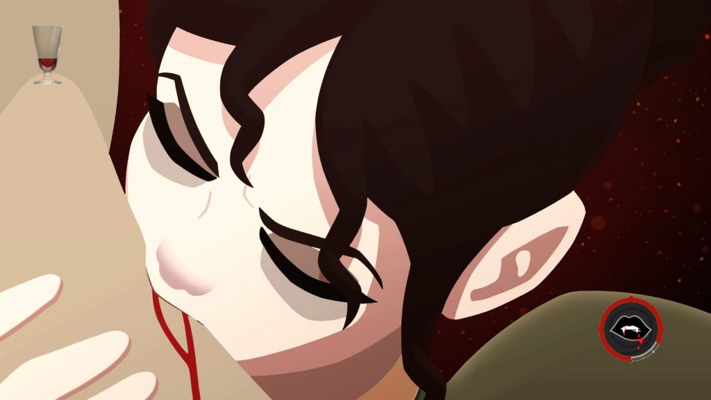 Hier kommen wir auch nun zum eigentlichen Thema des Spiels. Als Vampir auferstanden, muss man sich auch deren Gegebenheiten fügen. Tagsüber etwas zu machen ist vorbei. Denn nur in der Nacht und ohne Sonne kann man überleben. Dafür muss man aber auch einiges an Blut trinken. Dafür gibt es zwei Auswahlmöglichkeiten. Entweder saugt man den NPCs das Blut aus, hierbei sollte man es aber nicht übertreiben, sonst wird man wahnsinnig und wird zum „Über Vampir“. Oder man trinkt den „Blutwein“, also den sogenannten „Cabernet“. Der kostet aber Münzen, die es zu verdienen gilt. Aber keine Sorge, denn im laufe des Spiels gibt es eine Flasche, wo man unendlich „Blutwein“ bekommt.